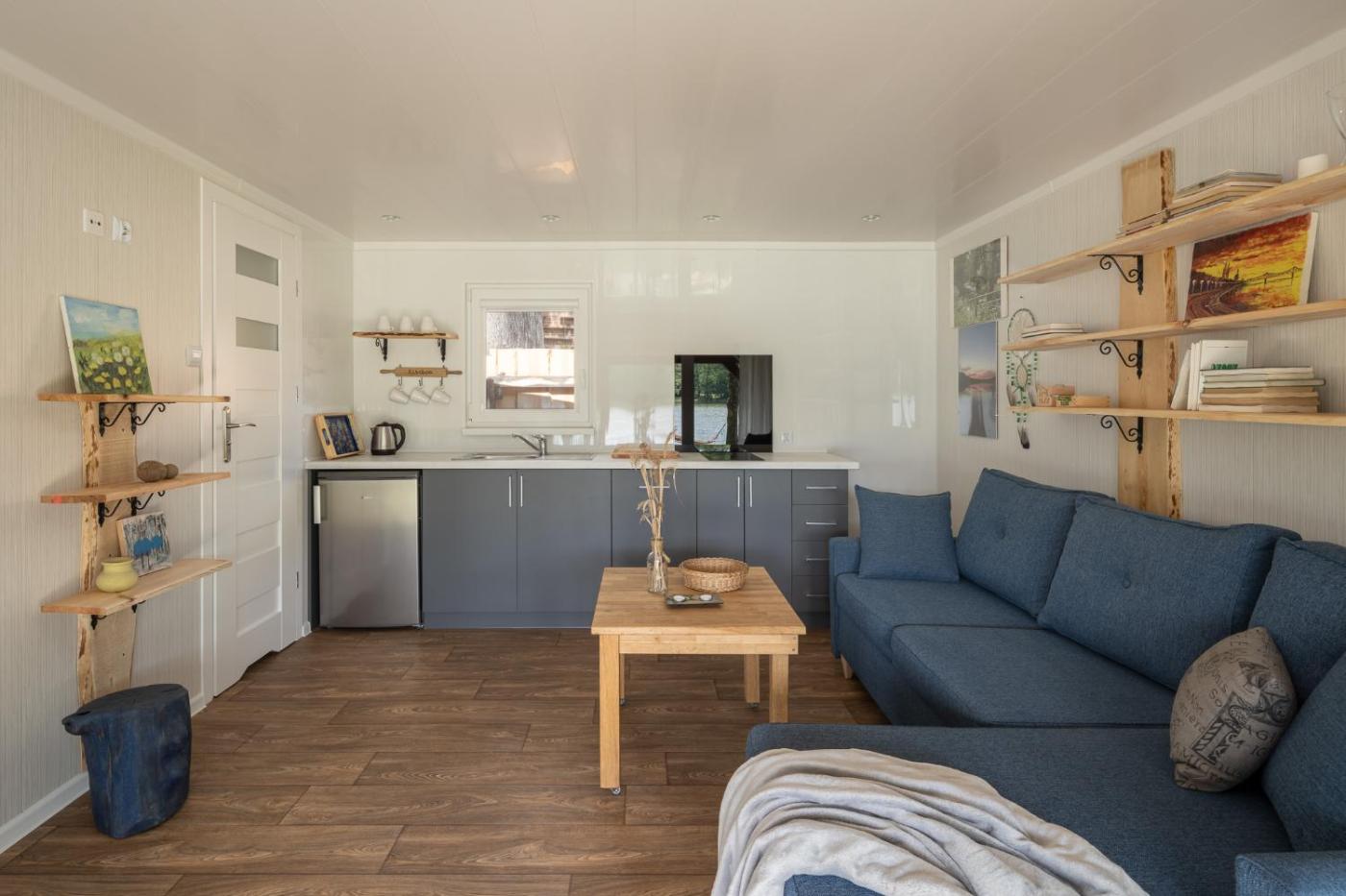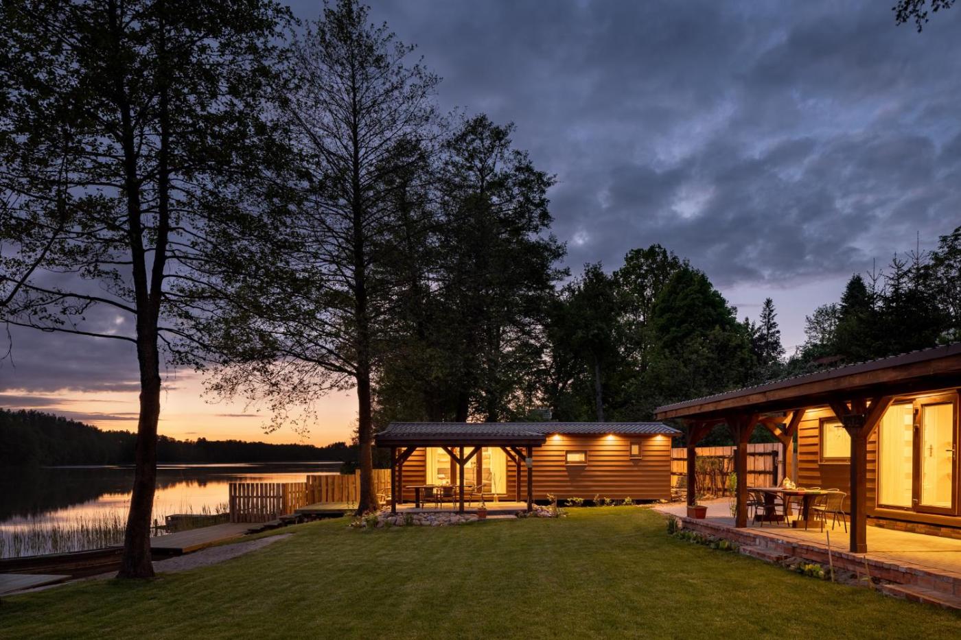 Dom z 1 sypialnią. Ten dom wakacyjny z oddzielnym wejściem mieści salon, oddzielną sypialnię i łazienkę z wanną lub prysznicem. Goście mogą przyrządzać posiłki w aneksie kuchennym z płytą kuchenną, zmywarką do naczyń, lodówką i przyborami kuchennymi. Dom wakacyjny oferuje ponadto ekspres do kawy, telewizor z płaskim ekranem i taras z widokiem na jezioro. W tej opcji zakwaterowania znajdują się 2 łóżka. Dom wakacyjny - 4 osobowy. Powierzchnia pokoju ok.: 24 mkw. ;