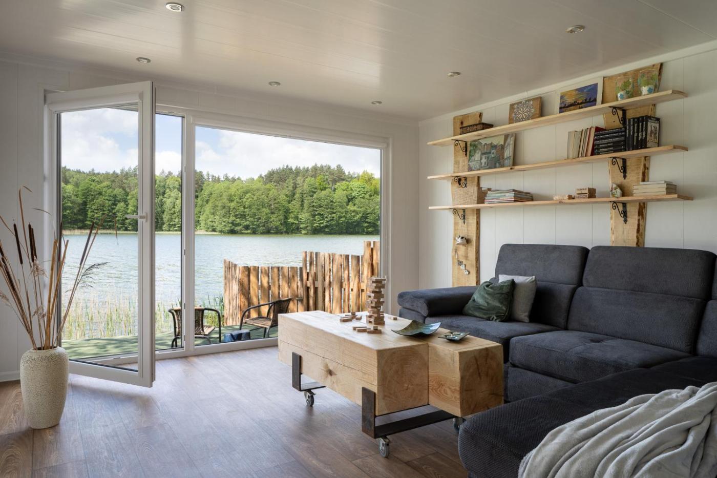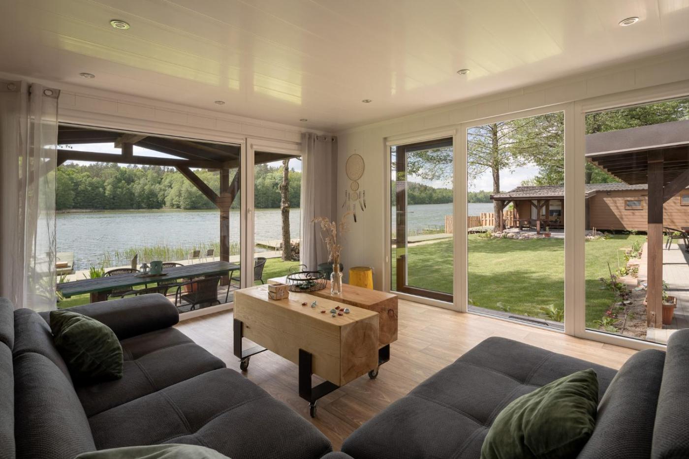 Dom z 2 sypialniami. Ten dom wakacyjny z oddzielnym wejściem mieści salon, 2 oddzielne sypialnie i łazienkę z wanną lub prysznicem. Goście mogą przygotowywać posiłki w aneksie kuchennym z lodówką, przyborami kuchennymi, płytą kuchenną oraz zmywarką do naczyń. Dom oferuje ponadto ekspres do kawy, telewizor z płaskim ekranem i taras z widokiem na jezioro. Do dyspozycji gości są 3 łóżka. Dom wakacyjny - 6 osobowy. Powierzchnia pokoju ok.: 40 mkw. ;