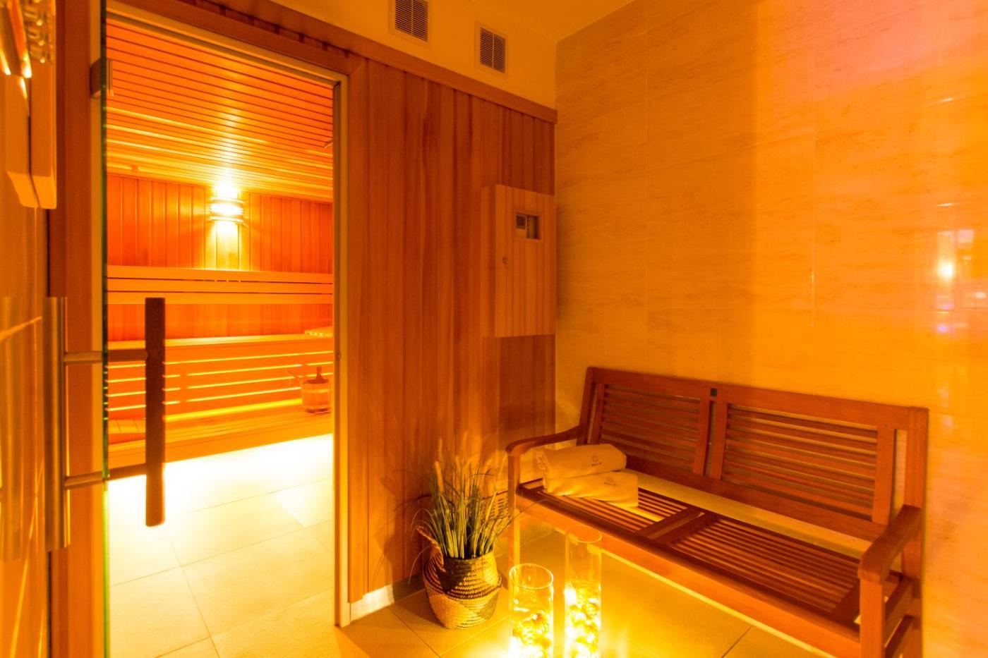 Zaplecze odnowy biologicznej obiektu Apartament 104 Wind w Welle obejmuje saunę i wannę z hydromasażem.