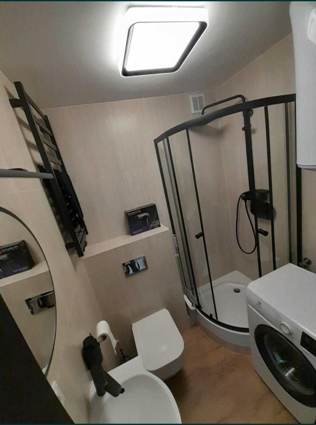 Apartament z 1 sypialnią. The air-conditioned apartment has 1 bedroom and 1 bathroom with a shower and a hairdryer. The well-fitted kitchenette features a stovetop, a refrigerator, a dishwasher and kitchenware. The apartment features a washing machine, an electric kettle, a tiled floor, a carpeted floor and a flat-screen TV with streaming services. The unit has 1 bed. Apartament - 2 osobowy. Powierzchnia pokoju ok.: 16 mkw.