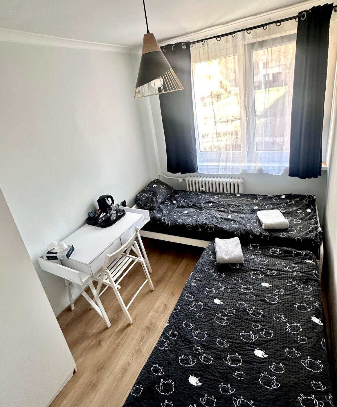 Duży pokój z 2 łóżkami pojedynczymi. The well-equipped kitchen features a stovetop, a refrigerator and a microwave. The twin room offers a washing machine and a tea and coffee maker, as well as a shared bathroom featuring a walk-in shower. The unit offers 2 beds. Pokój z 2 łóżkami pojedynczymi - 2 osobowy. Powierzchnia pokoju ok.: 14 mkw. ;