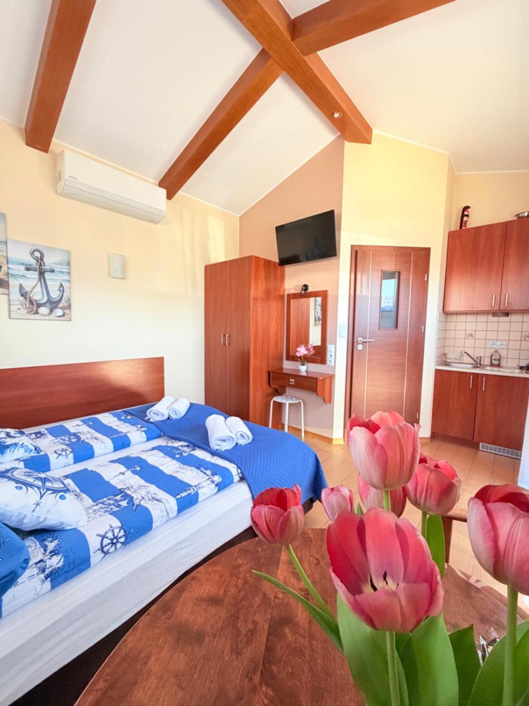 Apartament typu Deluxe z 2 sypialniami i balkonem. This apartment features 1 living room, 2 separate bedrooms and 1 bathroom with a shower and a hairdryer. Guests can make meals in the kitchenette that has a stovetop, a refrigerator, kitchenware and a microwave. This apartment has a tea and coffee maker, a barbecue, flat-screen TV with cable channels, as well as chocolate for guests. The unit has 4 beds. Apartament - 6 osobowy. Powierzchnia pokoju ok.: 48 mkw. ;