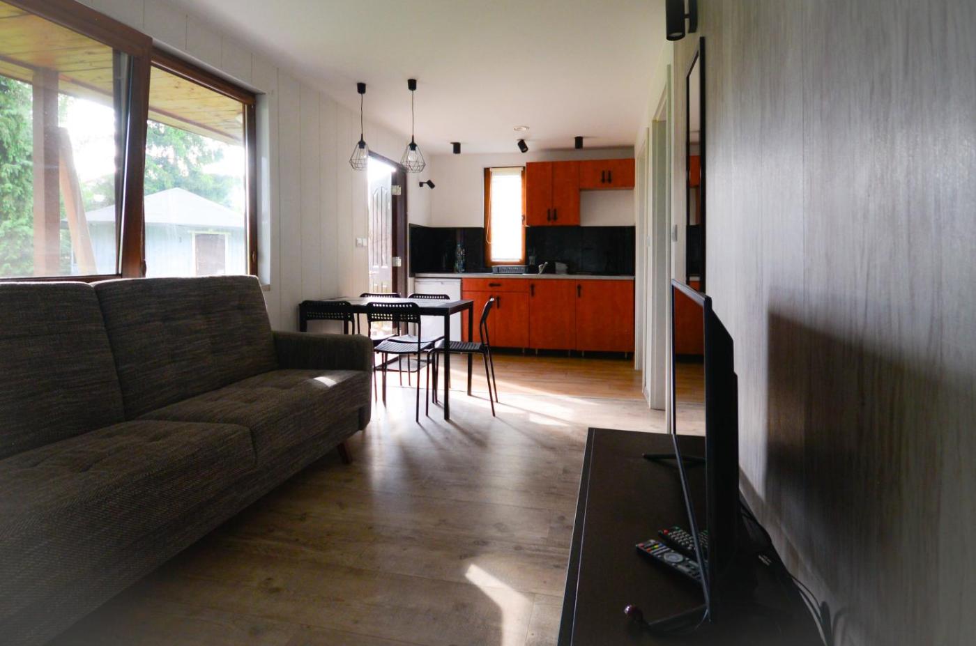 Dom wakacyjny. Featuring a private entrance, this holiday home also comprises 1 living room, 1 separate bedroom and 1 bathroom with a shower. Meals can be prepared in the kitchen, which comes with a stovetop, a refrigerator and kitchenware. The holiday home provides soundproof walls, a tea and coffee maker, a wardrobe, a flat-screen TV, as well as lake views. The unit offers 3 beds. Dom wakacyjny - 5 osobowy. Powierzchnia pokoju ok.: 35 mkw. ;