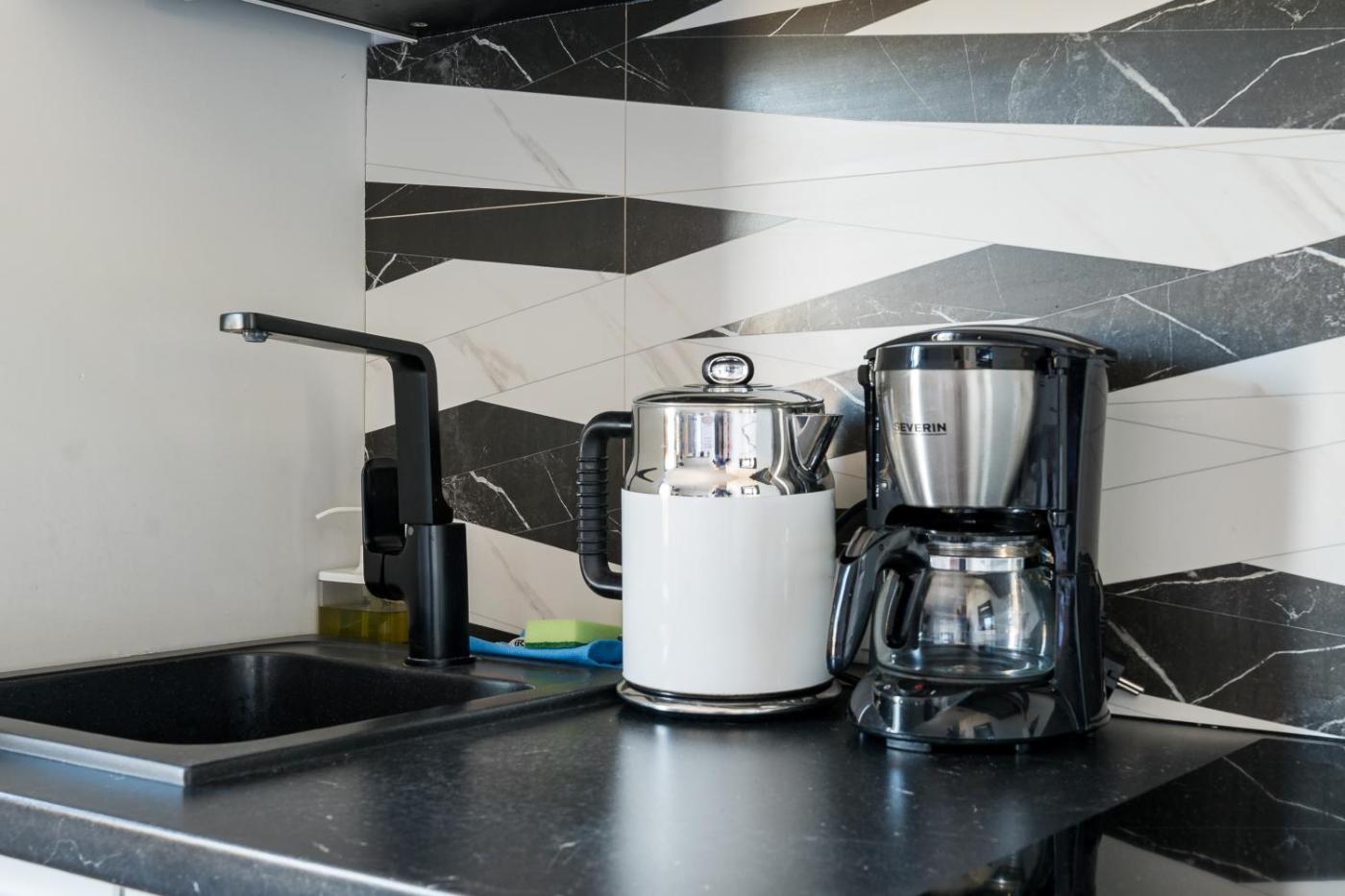 Studio typu Deluxe. In the fully equipped kitchenette, guests will find a stovetop, a refrigerator, a dishwasher and kitchenware. The studio features a washing machine, a private entrance, a balcony with city views as well as a private bathroom boasting a shower. The unit has 2 beds. Studio - 3 osobowy. Powierzchnia pokoju ok.: 27 mkw.