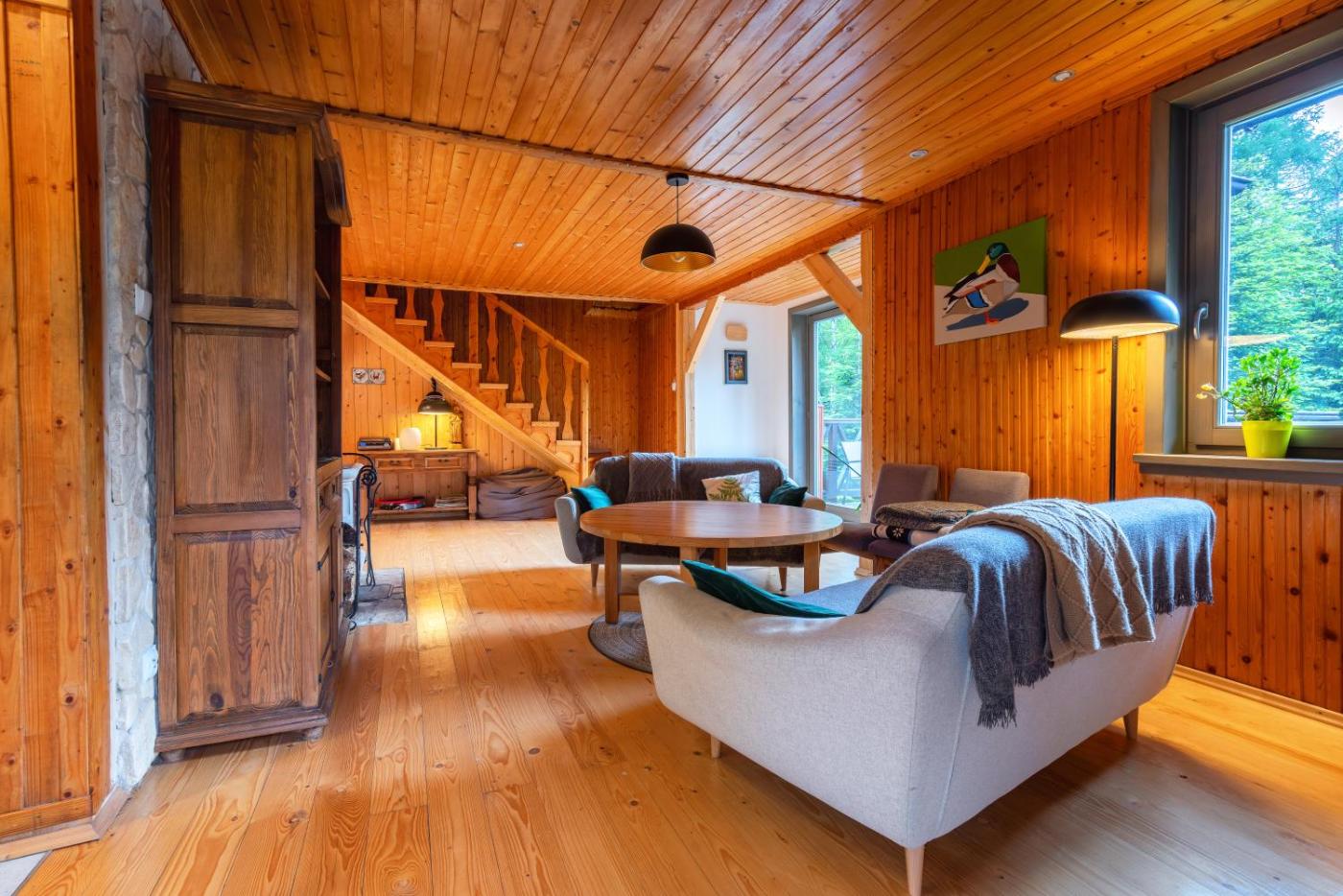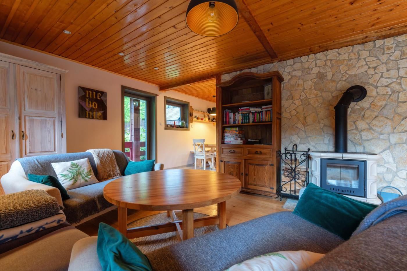 Domek. The fireplace is a top feature of this chalet. Guests will find a stovetop, a refrigerator, a dishwasher and kitchenware in the fully equipped kitchen. The chalet also includes a barbecue. The spacious chalet features a washing machine, a private entrance, a terrace with garden views as well as a shared bathroom boasting a shower. The unit has 6 beds. Domek - 8 osobowy. Powierzchnia pokoju ok.: 120 mkw.
